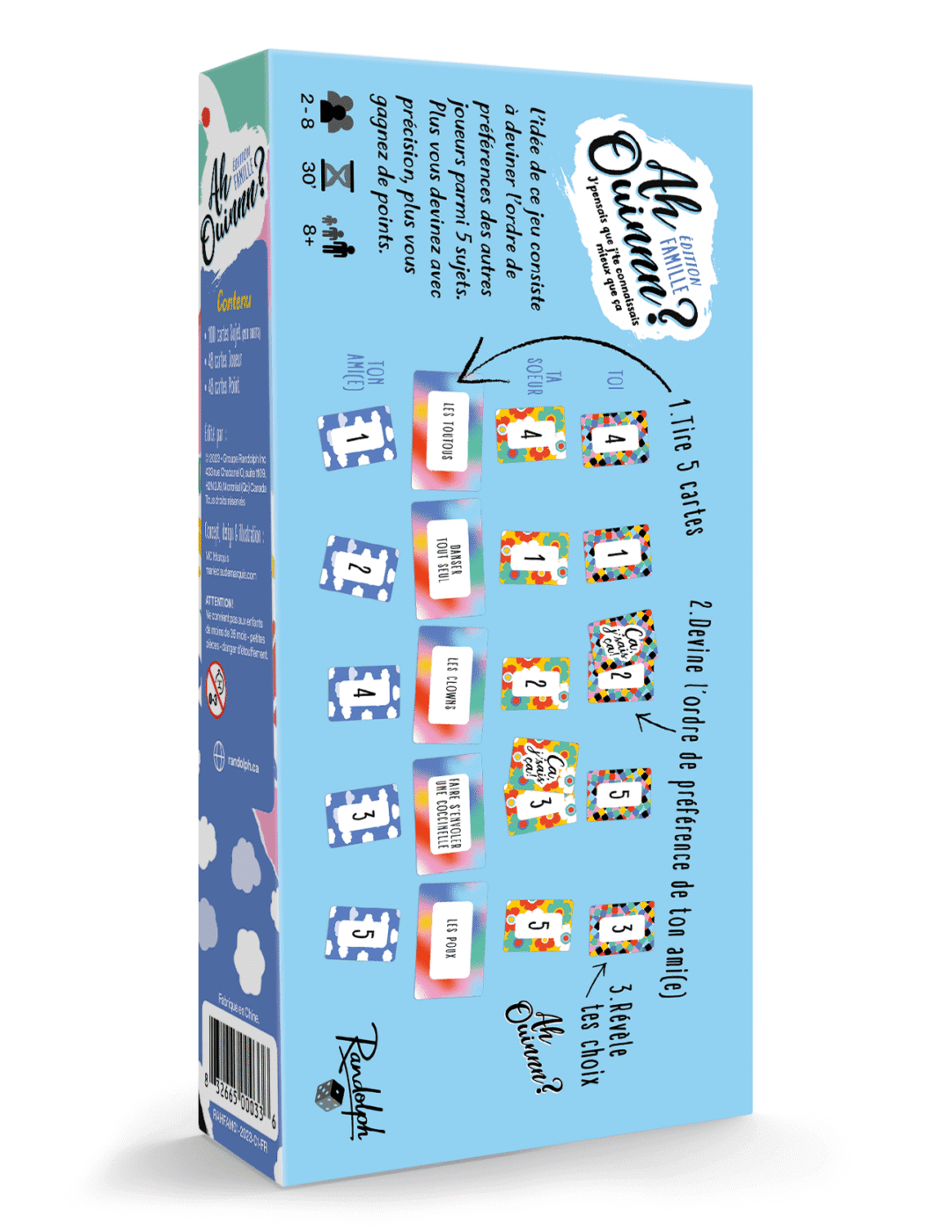 L’idée de Ah ouinnn? consiste à deviner l’ordre de préférence des autres joueurs parmi 5 sujets.