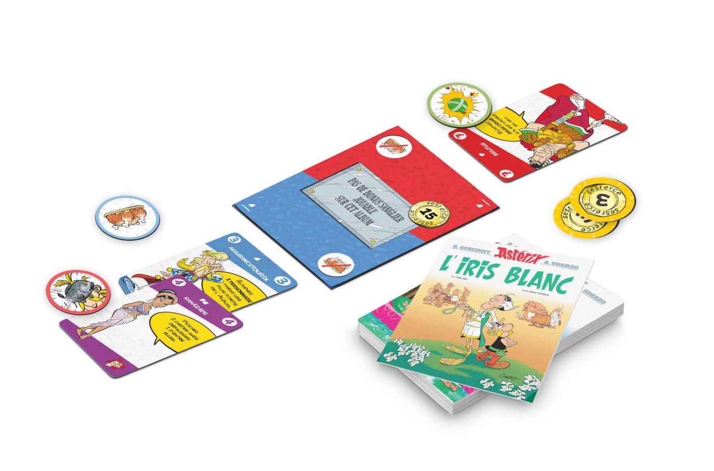 À vous de jouer les bons personnages au bon moment, de surprendre vos adversaires et d’être le premier à atteindre 50 sesterces pour décrocher la victoire !