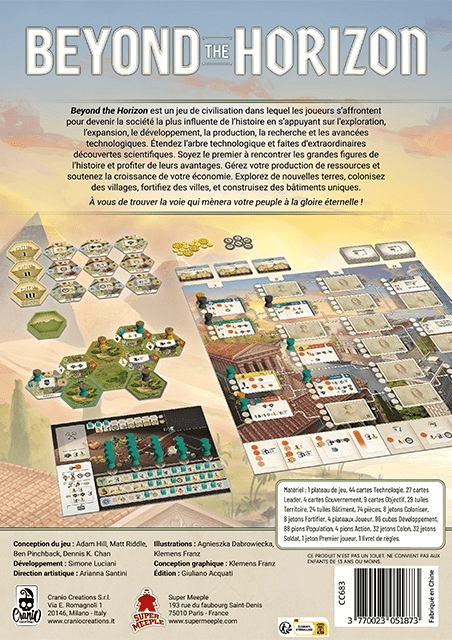 Beyond the Horizon est un jeu de civilisation dans lequel les joueurs s'affrontent pour devenir la société la plus influente de l'histoire grâce à l'exploration et à l'expansion, au développement et à la production, à la recherche et au progrès technologique.