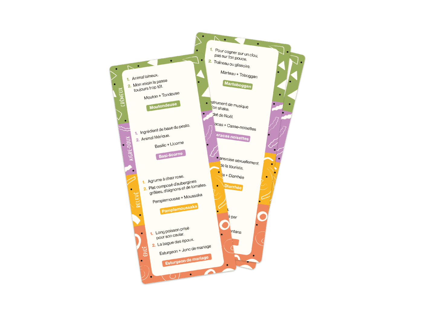 • 600 devinettes divisées en 4 niveaux de difficulté pour quadrupler le plaisir: Crémeux, Aigre-Doux, Relevé, Épicé