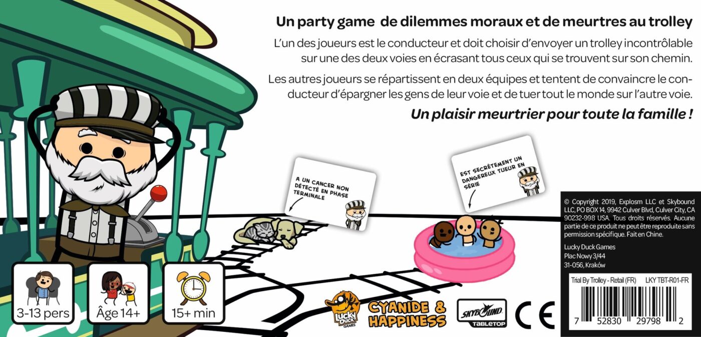 Bienvenue dans Dilemme Express, l’adaptation délirante du célèbre “trolley problem”. À chaque manche, un joueur incarne le Conducteur et doit choisir quelle voie le trolley écrasera. Les autres joueurs, répartis en deux équipes, tentent désespérément de sauver leur voie… tout en sabotant celle de l’adversaire avec des personnages douteux et des modificateurs catastrophiques.
