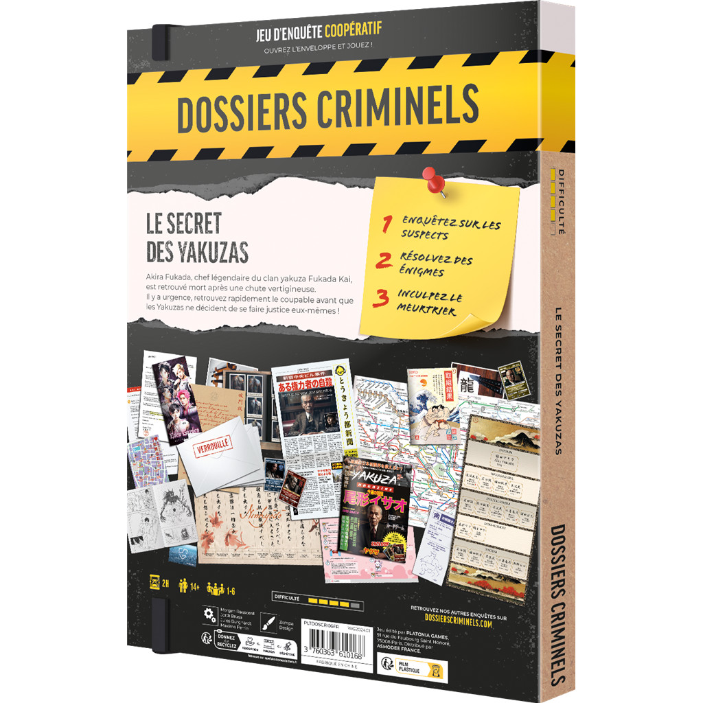 - 📚 UN DOSSIER CRIMINEL COMPLET : Contient un plan du métro de Tokyo, un manga, un magazine sur les Yakuzas, un article de presse, des photos de tatouages, des contenus audio…