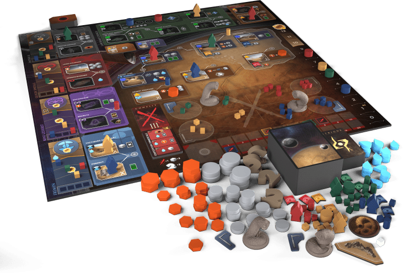 Dune : Imperium - Insurrection est une suite indépendante qui reprend le mélange de deckbuilding et de placement d’ouvriers inauguré par Dune : Imperium. Continuez à trouver l’équilibre entre puissance militaire et intrigue politique en maniant de nouveaux outils dans votre quête de victoire. Consolidez vos plans grâce aux Espions. Accroissez vos ressources avec des contrats vitaux. Ou apprenez les techniques Fremen pour rejoindre la bataille à dos de puissants vers des sables ! Un nouveau mode à six joueurs vient également opposer deux équipes dans le plus grand affrontement jamais vu ! Les décisions vous appartiennent. L’Imperium attend !