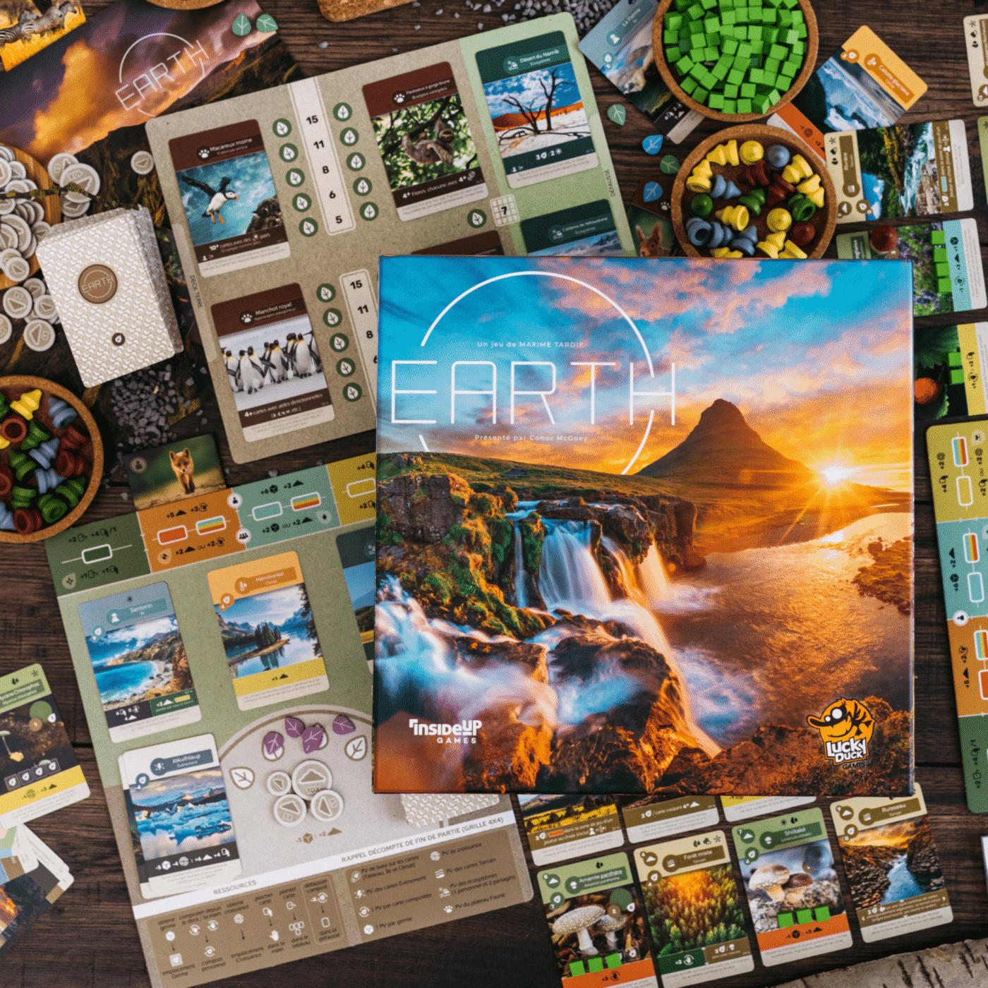 Earth vous plonge dans la création d’îles luxuriantes et autosuffisantes, où chaque carte posée fait évoluer votre environnement. Avec plus de 350 cartes uniques, chaque partie devient un terrain d’exploration rempli de synergies inattendues, de combos puissants et de stratégies renouvelées. Votre défi : bâtir un tableau de 16 cartes qui prospère de lui-même grâce à un moteur intelligent… tout en profitant du rythme fluide où tous les joueurs jouent à chaque tour.