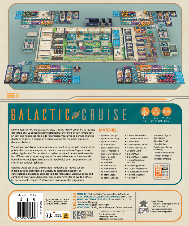 Galactic Cruise est un jeu de placement d'ouvriers où vous devrez tenter de devenir le PDG d'une compagnie proposant des séjours dans l'espace !
