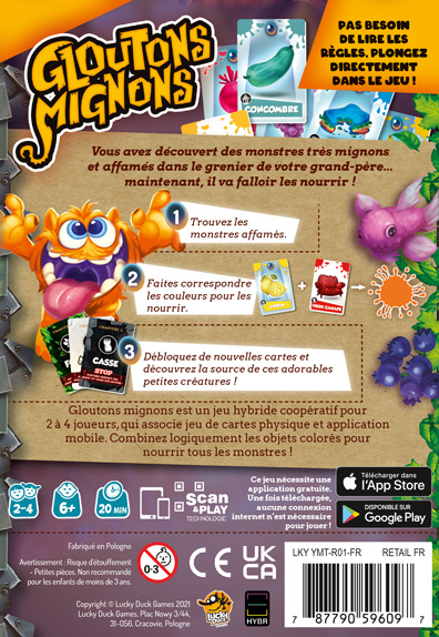 Gloutons Mignons est un jeu de cartes coopératif d’association de couleurs pour 2 à 4 joueurs. Votre but est de terminer chaque niveau en nourrissant toutes les créatures des aliments qu’elles aiment.