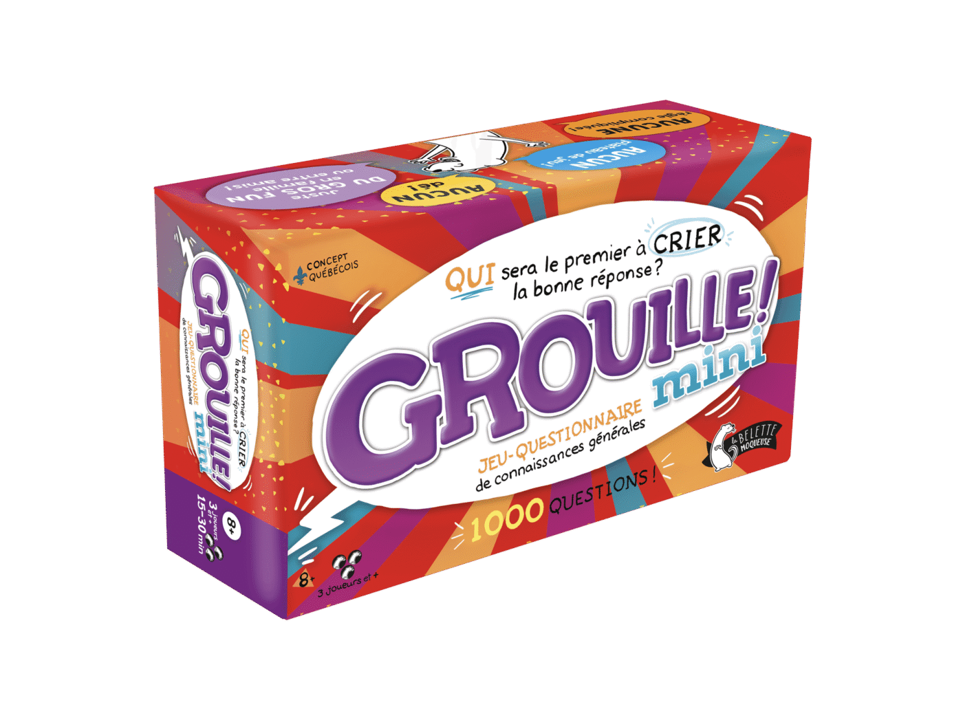 GROUILLE! mini est un jeu-questionnaire de connaissances générales pour les jeunes de 8 à 12 ans, dont les règles ultra simples s’apprennent en une minute. Le but : crier la bonne réponse avant ses adversaires! Chacun des joueurs prend une pile de 7 questions. Un joueur désigné pose une première question et celui qui répond correctement doit lire à son tour une question de sa pile. La main change selon le joueur qui a la bonne réponse. Celui qui vide sa pile de questions en premier gagne la partie! GROUILLE! mini peut également s’adapter aisément pour jouer en classes! Le jeu parfait pour tester les méninges des élèves des deuxièmes et troisièmes cycles du primaire.