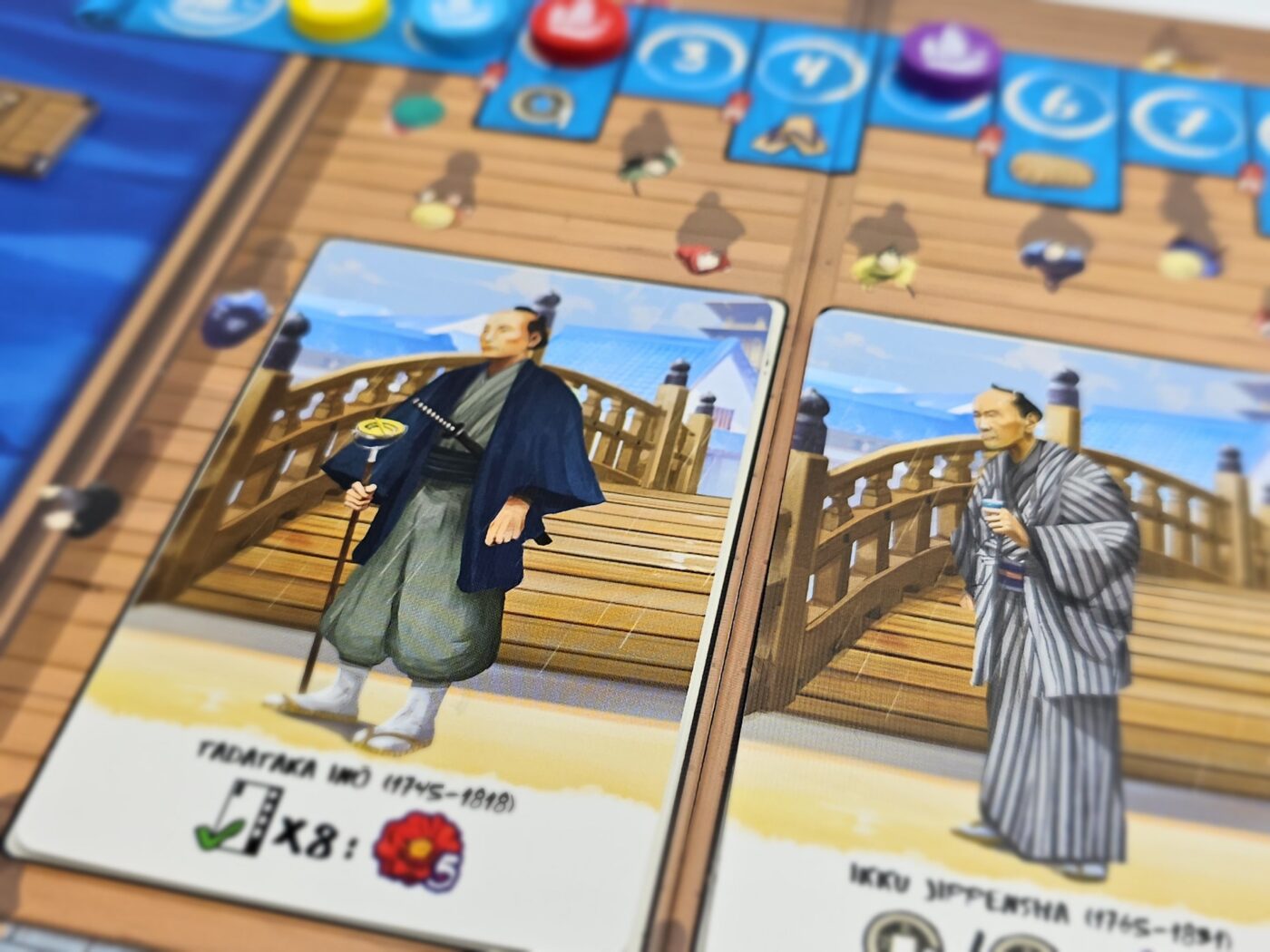 The Iki: Akebono expansion introduces a new location to discover in Edo: the bridge of Nihonbashi, which expands the main street and offers players new opportunities. Players can stop at the bridge to meet famous personalities from the Edo era (like Hokusai Katsushika, Sanyo Rai or Tokunai Mogami) and to trade with the ships (built by the players) in the river.