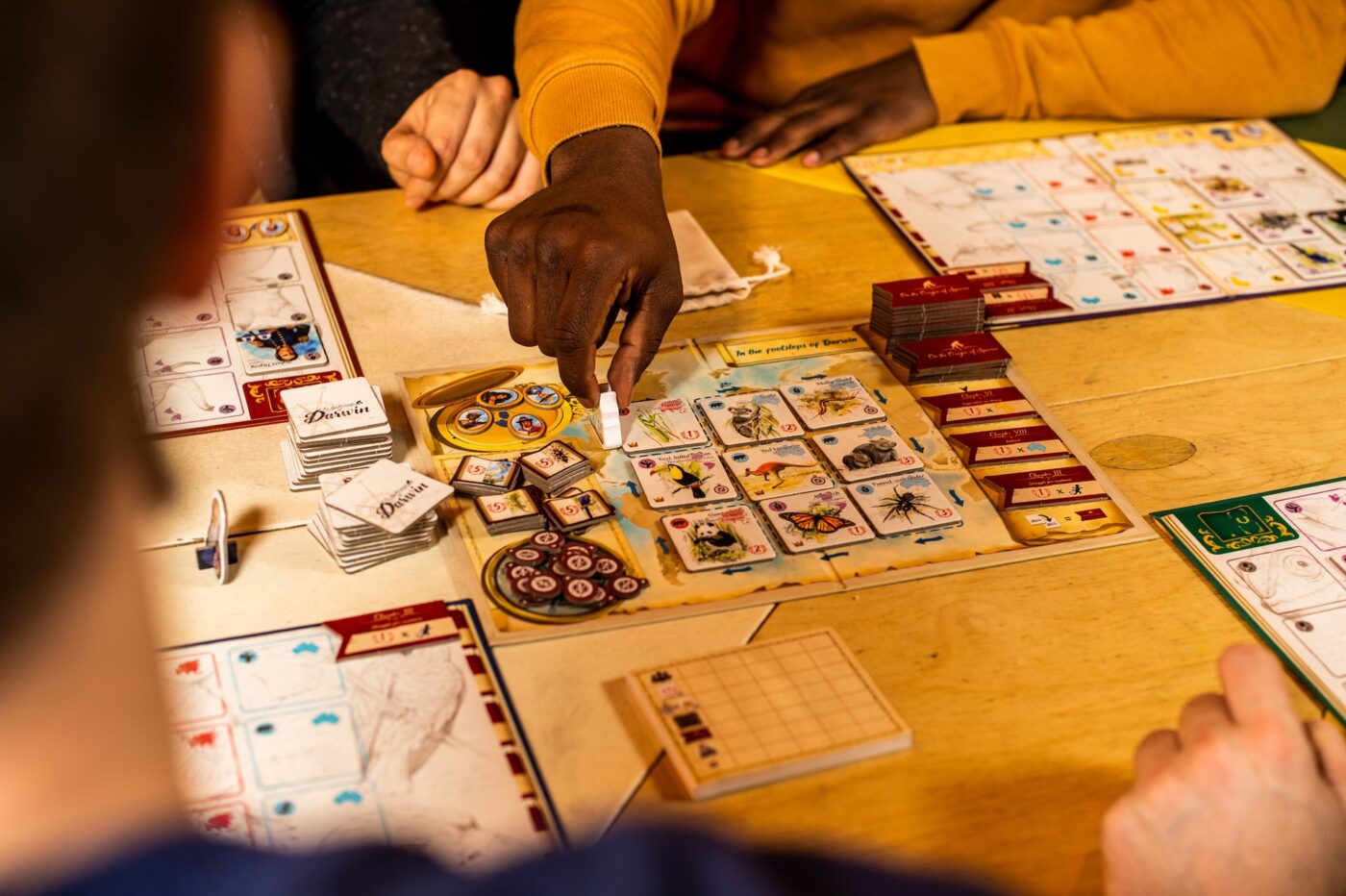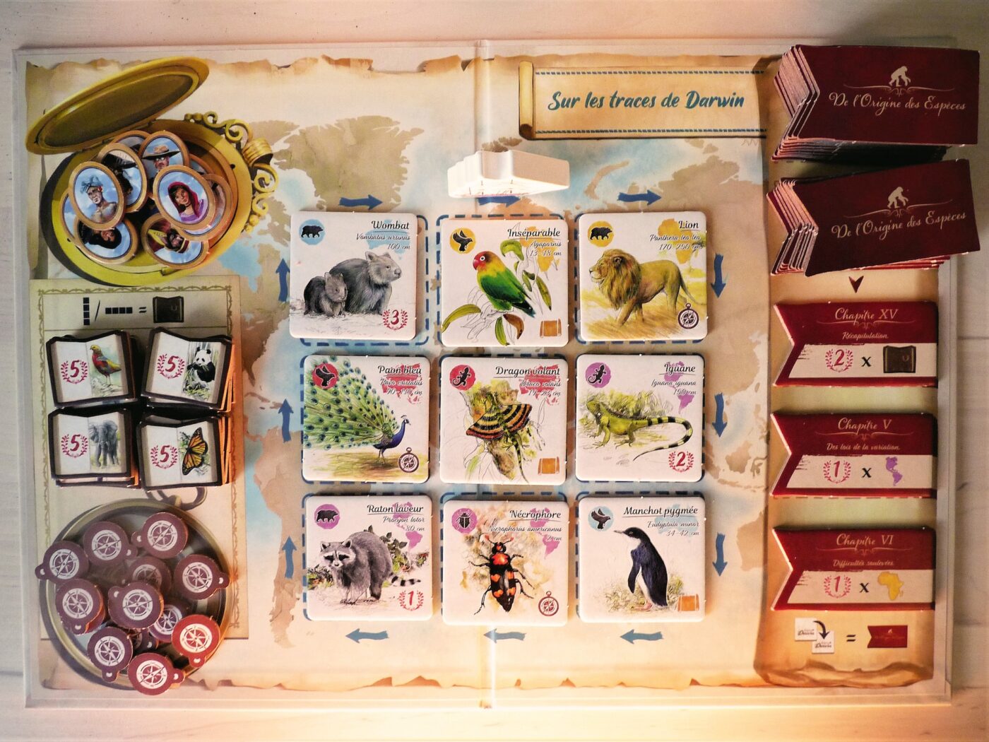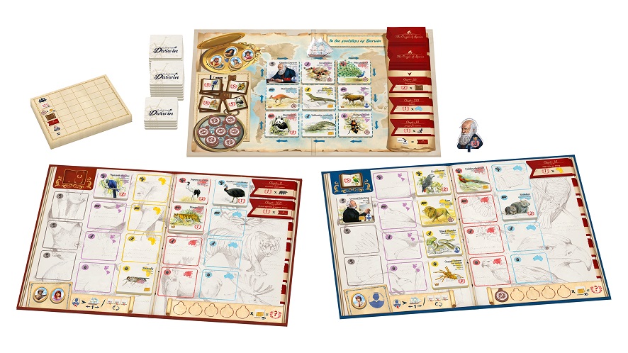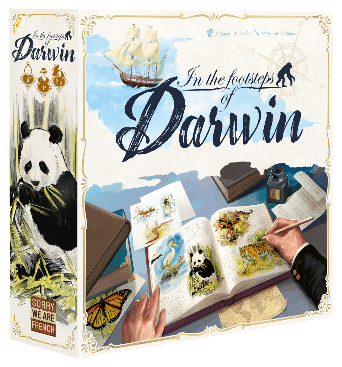 Players are junior naturalists who have just arrived aboard the Beagle to help Charles Darwin finish his book On the Origin of Species. During this journey, you will study animals, carry out cartographic surveys, publish your findings, and develop theories. Your goal is to score more Victory Points than your opponents to determine who contributed the most to the Origin of Species!