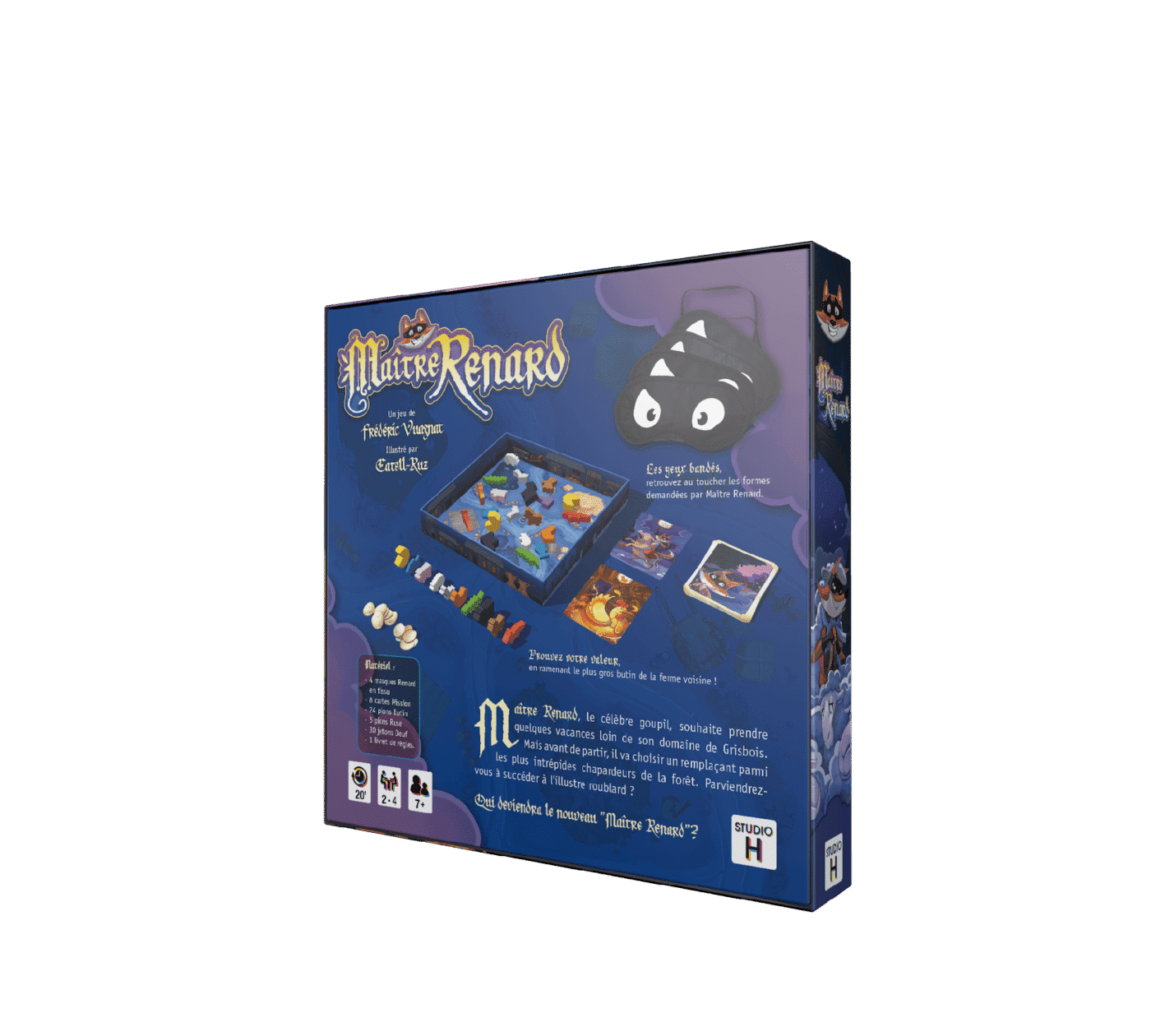 Maître Renard, le célèbre goupil, souhaite prendre quelques vacances loin de son domaine de Grisbois. Mais avant de partir il va choisir un remplaçant parmi les plus intrépides chapardeurs de la forêt. Afin de lui prouver votre valeur vous allez devoir accomplir les missions que vous confiera l’illustre roublard et ramener le plus gros butin possible de la ferme voisine. Le premier à obtenir 10 pions Œuf remporte la partie et devient le nouveau Maître Renard. Pour des joueurs expérimentés, passez cet objectif à 15 pions.
