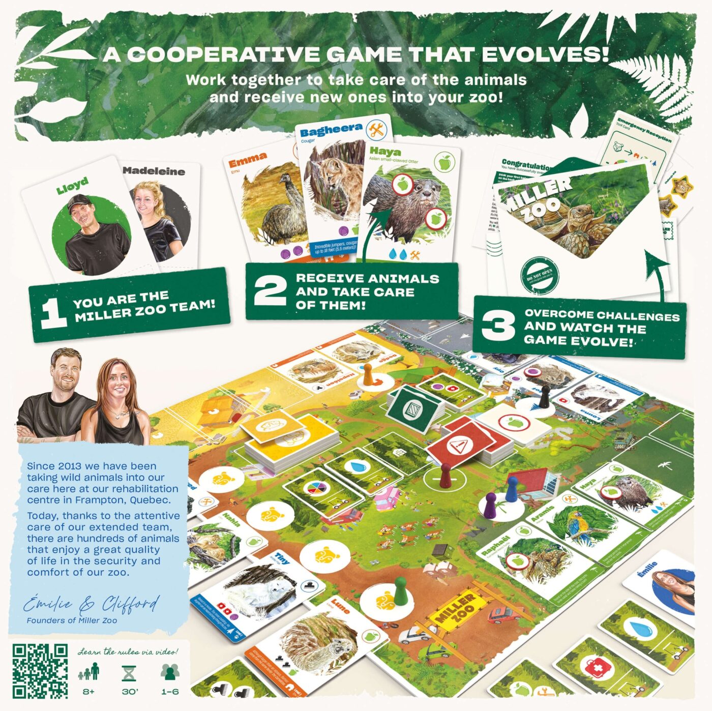 TAKE CARE OF ACTUAL ANIMALS All of the animals you'll meet in the game are actual inhabitants of Miller Zoo. Learn about them and their species on the cards!