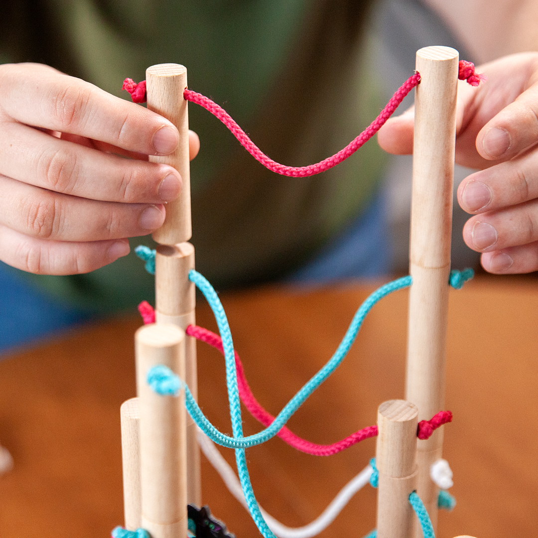 Challenge your friends and family to a game where strategy meets fun. Take turns placing or stacking the poles, making sure no cables are left hanging. But beware! Toppling the structure means defeat, and no one wants to be the clumsy cat on this island.