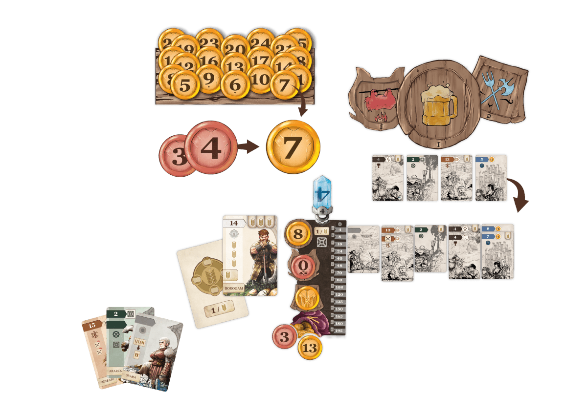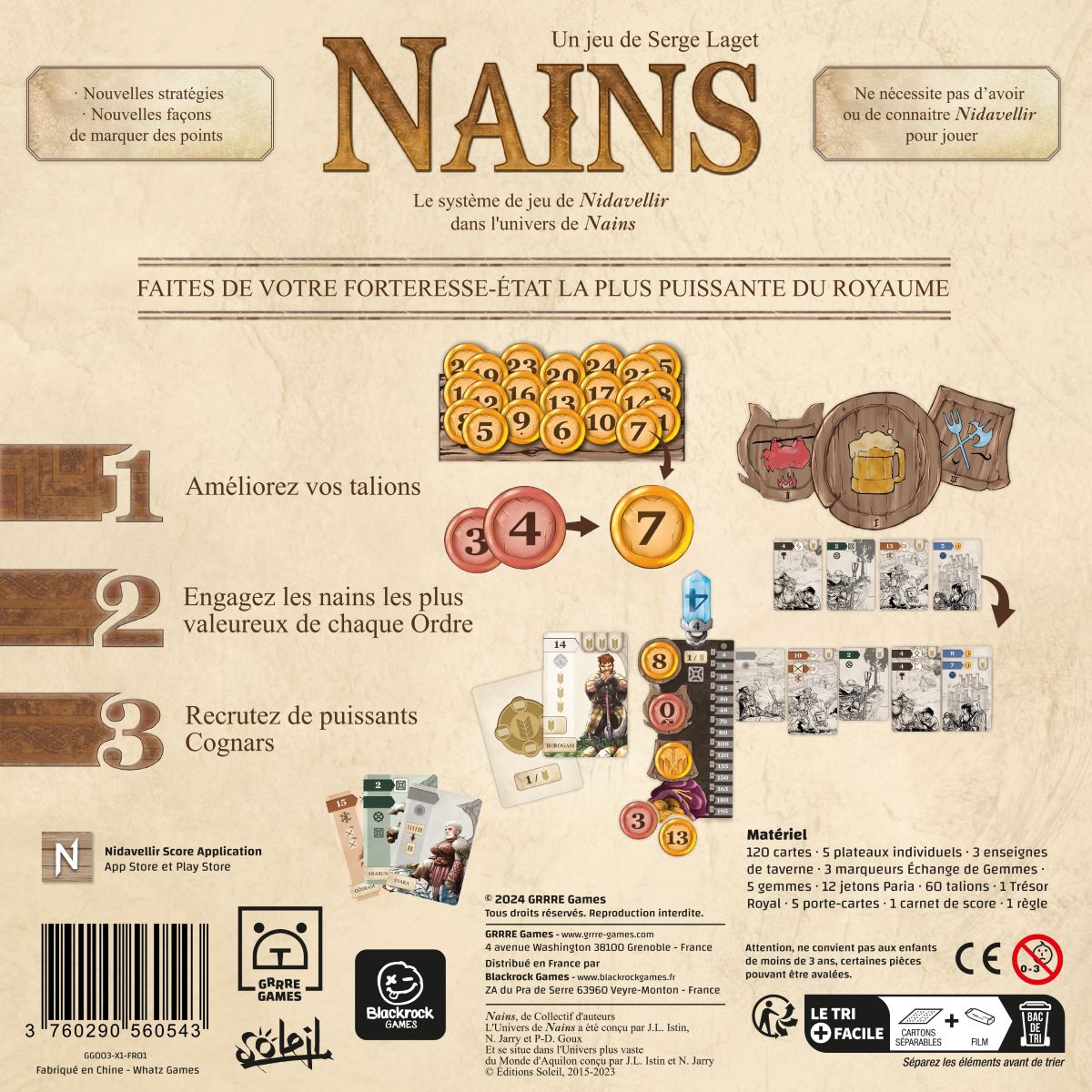 Les joueurs s'affrontent pour attirer des nains d'ordres différents dans leur taverne (Bouclier, Forge, Talion, Temple et Errants), chacun apportant des compétences et des capacités spéciales. Grâce à des choix tactiques astucieux et à une gestion habile de vos ressources, vous devrez élaborer des plans audacieux pour surpasser vos adversaires. Plongez dans cet univers exceptionnel et vivez une expérience ludique riche en surprises et en rebondissements !
