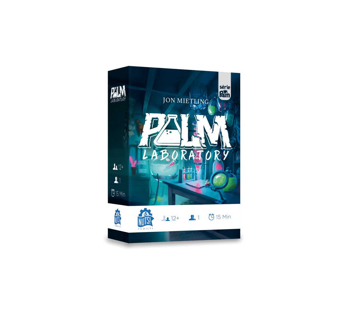 Emportez votre laboratoire partout avec vous grâce à ce jeu de cartes ingénieux. Palm Laboratory est conçu pour être joué directement dans le creux de votre main. Que vous soyez assis, debout, à une terrasse de café, ou en train, vous n'avez pas besoin de table pour l'expérimenter. Chaque carte vous permettra de produire de nouvelles ressources, mais il faudra toujours veiller à maintenir un niveau de danger sous contrôle. Remplissez l'une des trois missions, atteignez votre objectif et calculez votre score pour mesurer votre réussite.