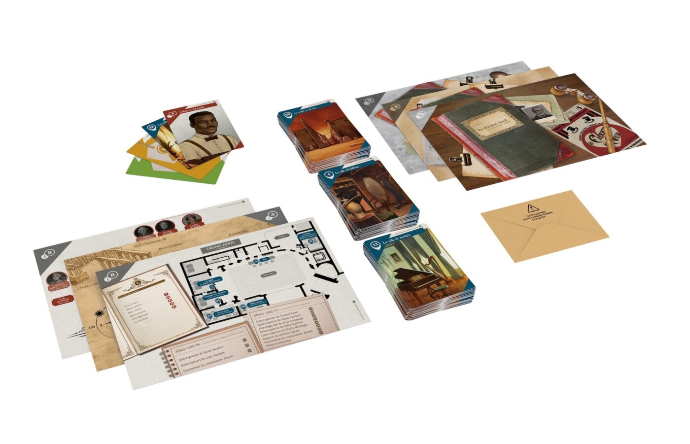 NON-DESTRUCTIBLE CAMPAIGN: After finishing each case, put the cards back in order and close the envelope with the answers, not destroying any components!