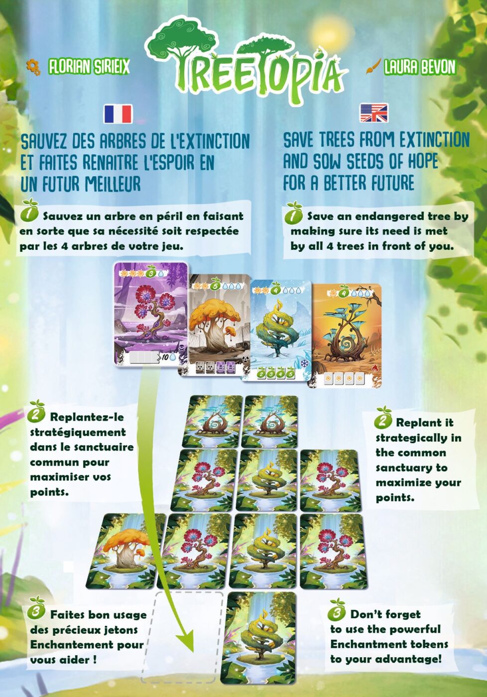 Treetopia est un jeu de cartes pour 2 à 4 joueurs. Sauvez les arbres de leur milieu hostile et replantez-les dans un sanctuaire. Respectez leurs nécessités uniques pour marquer un maximum de points et remporter la partie.