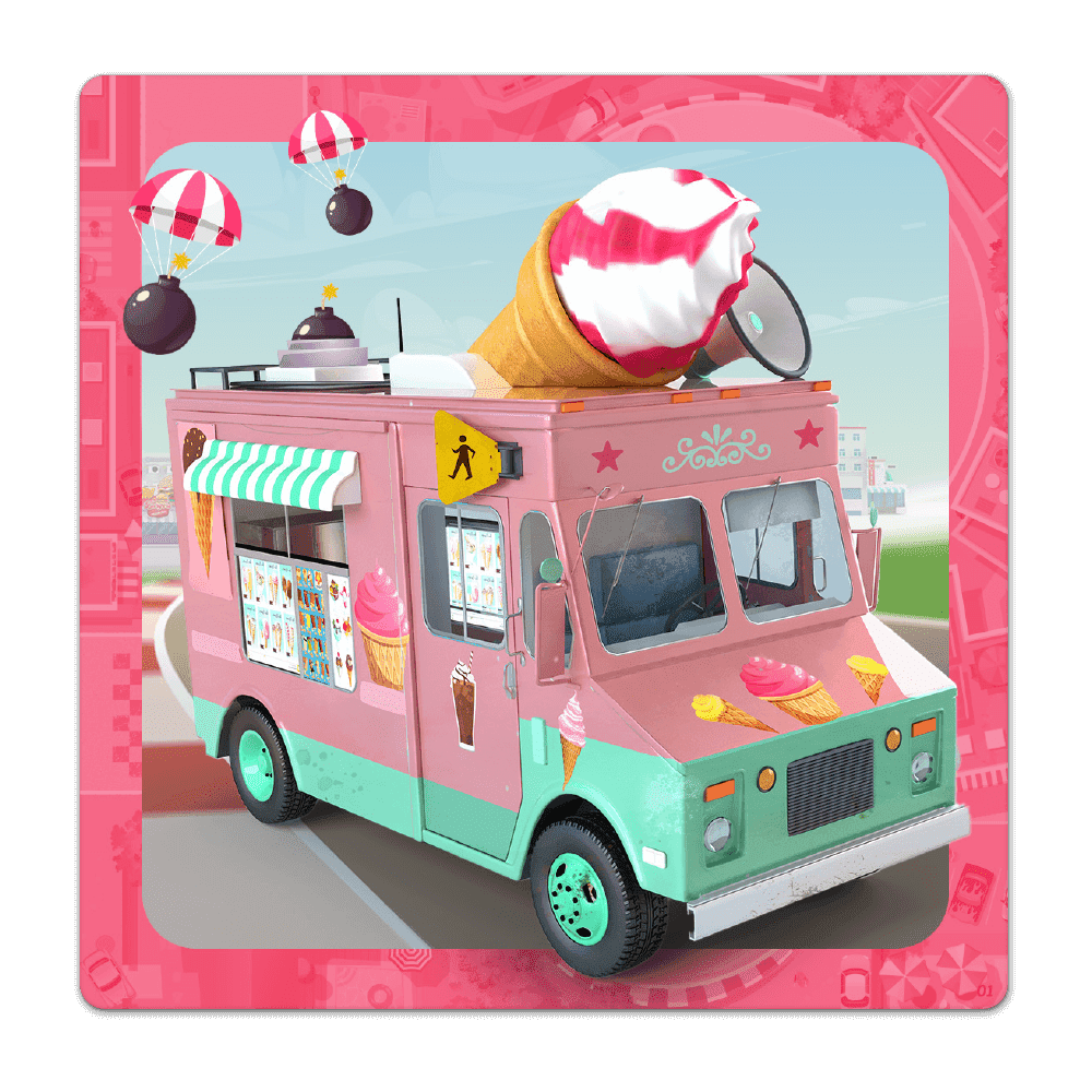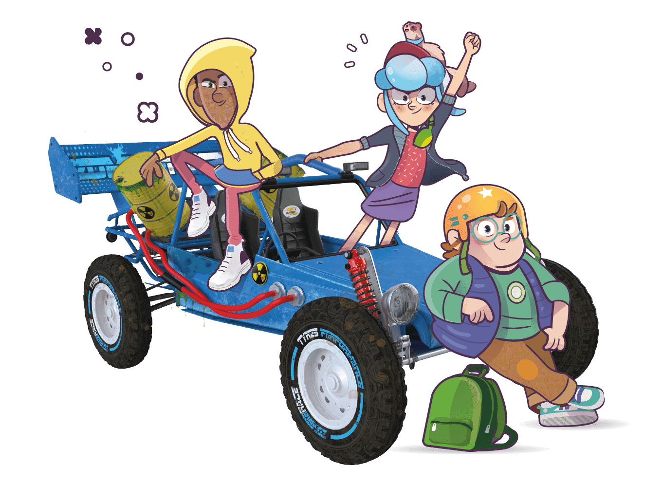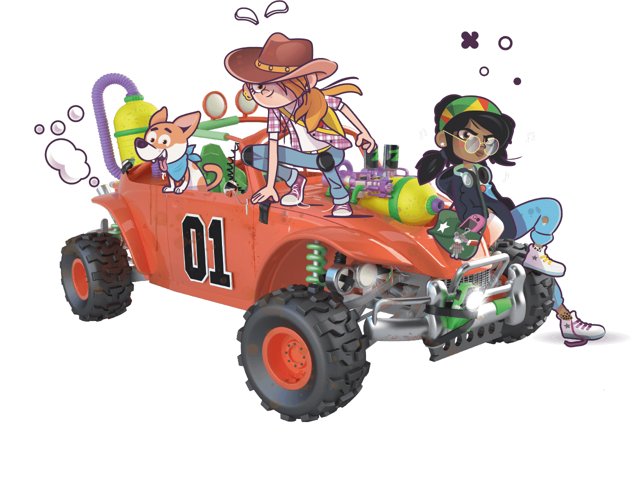 • Choose between 6 crazy Kidz-made cars with awesome add-ons like bombs, nitro boosts, and more!
