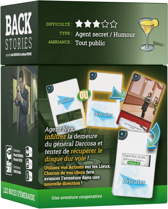 Dans Les Noces d'Émeraude, vous incarnez l'agent Nyx. Au cours d'une mission de haute voltige, tentez de déjouer les plans du sinistre général Darcosa, en lui subtilisant le disque dur Top Secret qu'il a en sa possession.