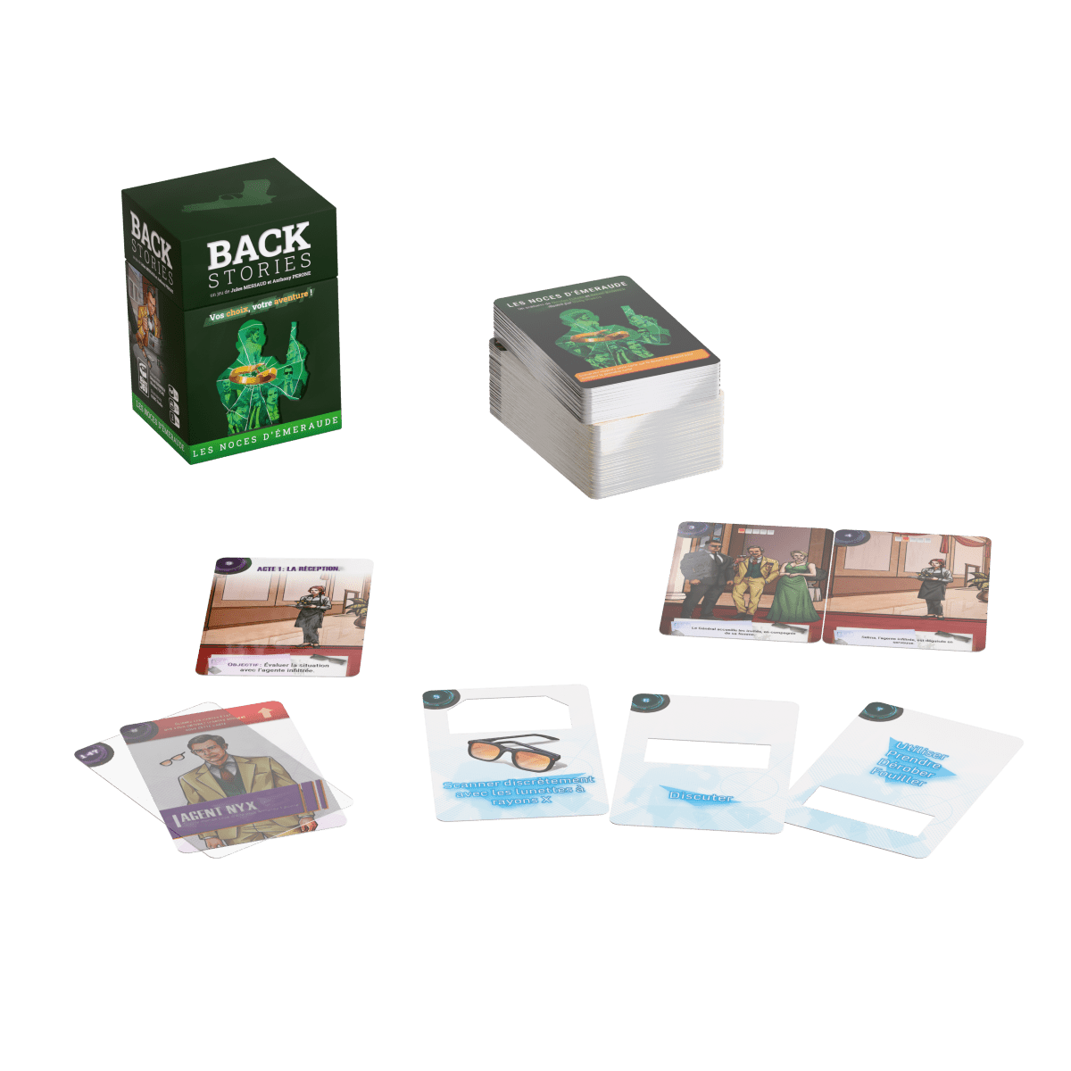 Backstories est un jeu à la mécanique aussi simple que révolutionnaire : un peu à la manière des jeux vidéo Point and Clic, interagissez avec votre environnement pour avancer dans votre palpitante aventure. Certaines cartes (Panorama) représentent l'environnement dans lequel vous évoluez. D'autres cartes (Actions) sont perforées, et représentent les actions que vous pouvez accomplir (Discuter, Fouiller, Objets en votre possession, etc.). Pour interagir, il vous suffit de disposer une carte perforée au dos de la carte Panorama qui vous intéresse, retournez alors la carte, et il vous suffit de lire le résultat de votre choix.