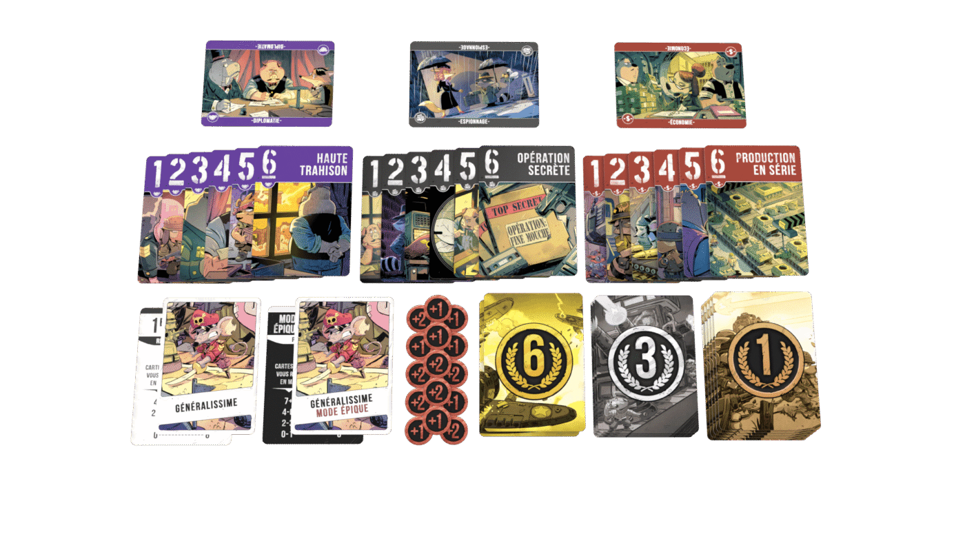 Après Bestioles en Guerre, l’affrontement reprend dans trois nouveaux Théâtres : Espionnage, Diplomatie et Économie. Utilisez judicieusement les capacités spéciales de vos cartes pour prendre l’ascendant sur votre adversaire dans un conflit offrant de toutes nouvelles possibilités stratégiques. Jouable seul ou en combinaison avec Bestioles en Guerre.