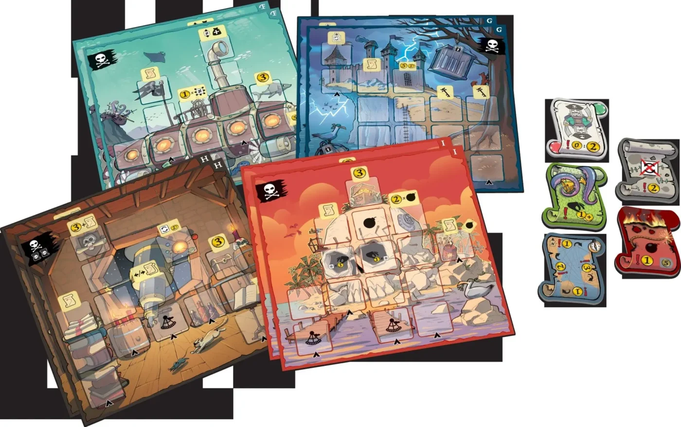 This expansion for Captain Flip adds 4 new Adventure boards and 5 new Treasure Maps.