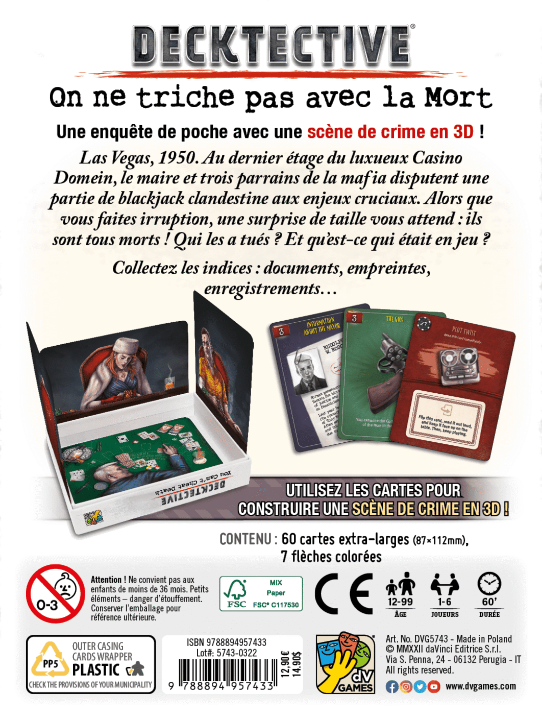 Vous êtes une équipe de détectives. Ce paquet de cartes vous propose une affaire à résoudre. Vous pouvez jouer de 1 à 6 joueurs, pour une partie d’environ une heure. Un même groupe de joueurs ne pourra jouer qu’une seule fois, mais rien ne vous empêche de prêter le jeu à vos amis une fois que vous avez résolu l’affaire !