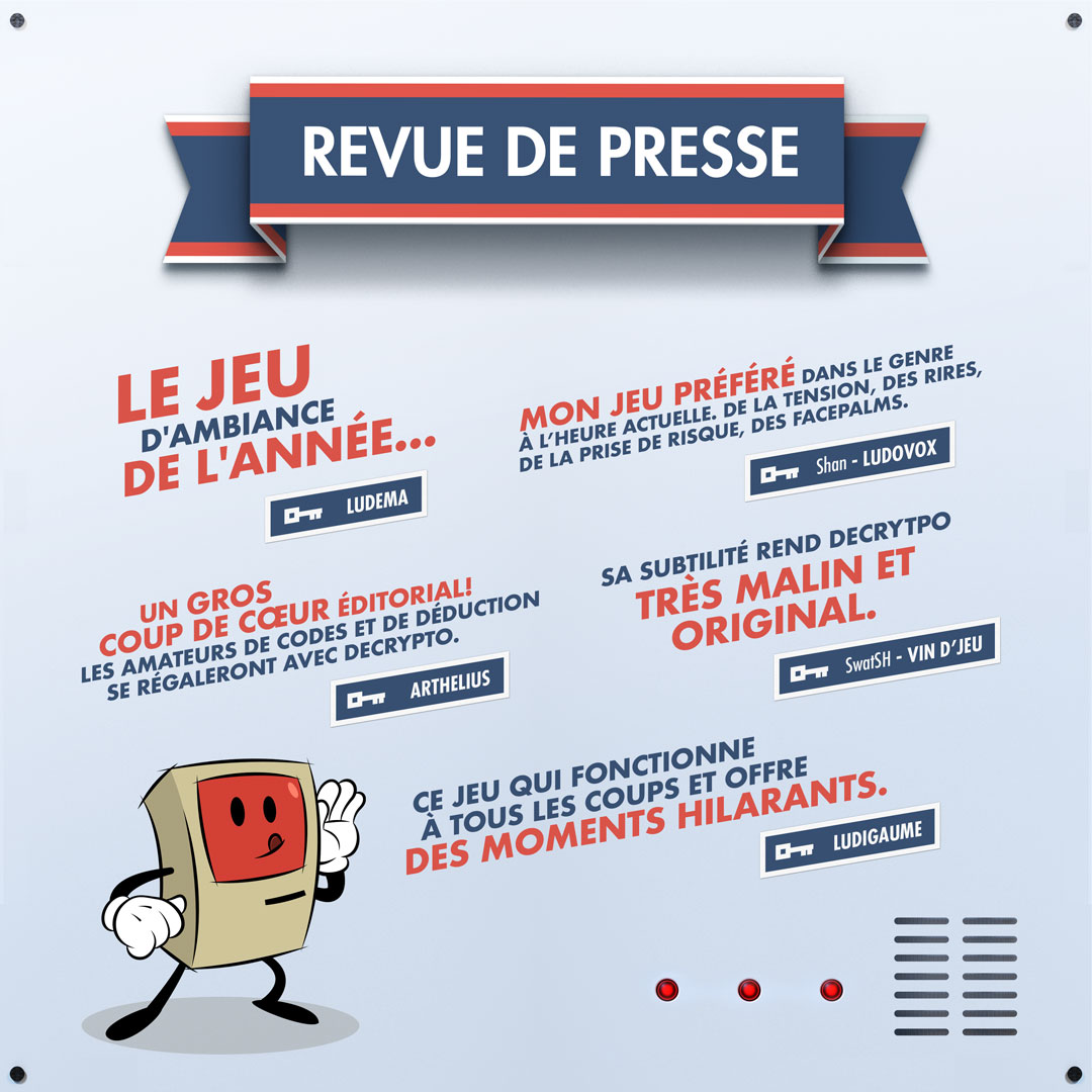 DECRYPTO est un jeu de communication brouillée: il faut donner des indices suffisamment clairs à votre équipe pour qu'elle vous comprenne, mais qui n'en révèlent pas trop à vos adversaires.