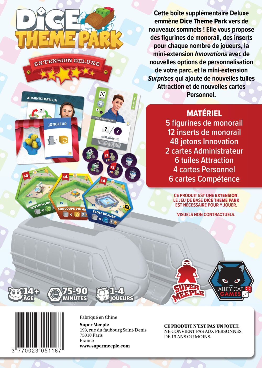 Cette boîte supplémentaire propose des figurines de monorail, des inserts pour chaque nombre de joueurs, la mini-extension Innovations avec de nouvelles options de personnalisation de votre parc, et la mini-extension Surprises qui ajoute de nouvelles tuiles Attraction et de nouvelles cartes Personnel.