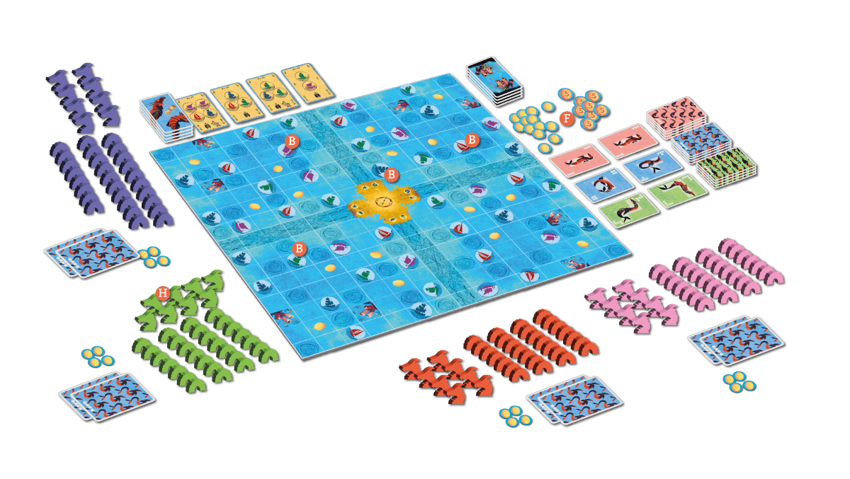 À chaque tour, l'une des deux cartes modèles de la main sera jouée pour positionner un dragon des mers sur le plateau, augmentant ainsi votre présence dans les quatre royaumes marins. Vous pourrez couler des navires ou collecter des trésors cachés dans l'océan.