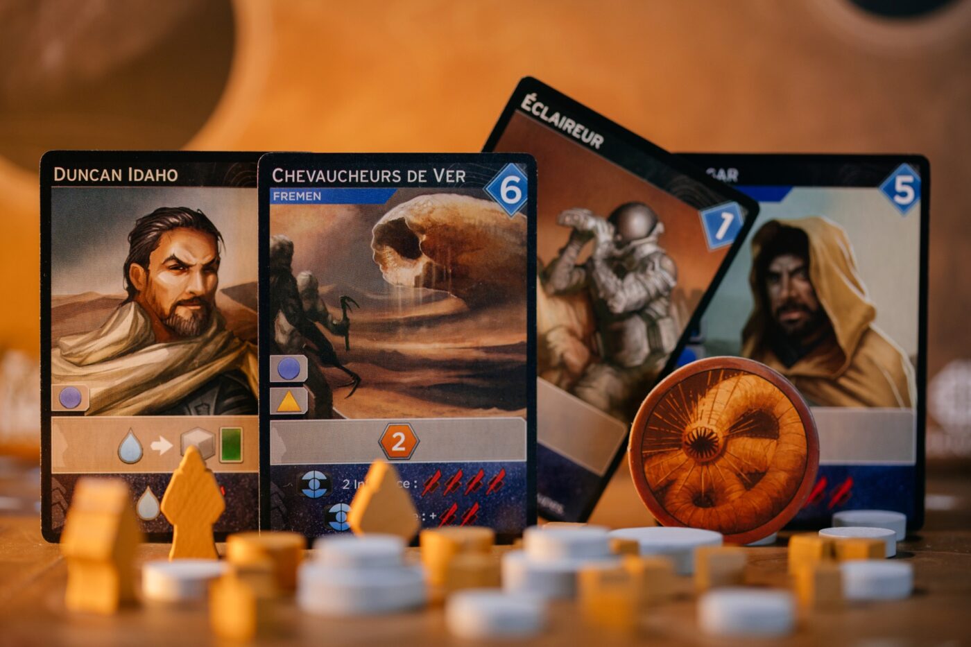 Vous pouvez devenir un puissance militaire, capable de déployer plus de troupes que vos adversaires, ou vous pouvez acquérir des cartes vous ouvrant les portes des quatre factions politiques représentées dans le jeu : l’Empereur, la Guilde Spatiale, l’Ordre du Bene Gesserit et bien sûr, les Fremens.