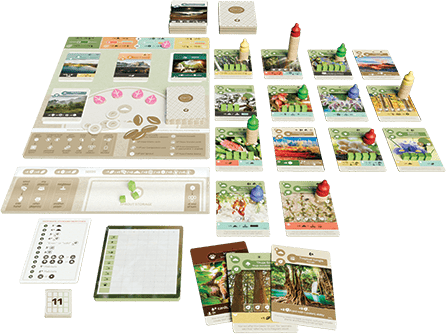 Le principe reste le même : bâtir un tableau de 16 cartes pour créer un écosystème riche et harmonieux. Mais cette extension introduit de nouveaux plateaux, des jetons supplémentaires, des cartes inédites (Faune, Écosystème, Climat, Île…) et même la possibilité de jouer en équipe ou jusqu’à 6 joueurs.