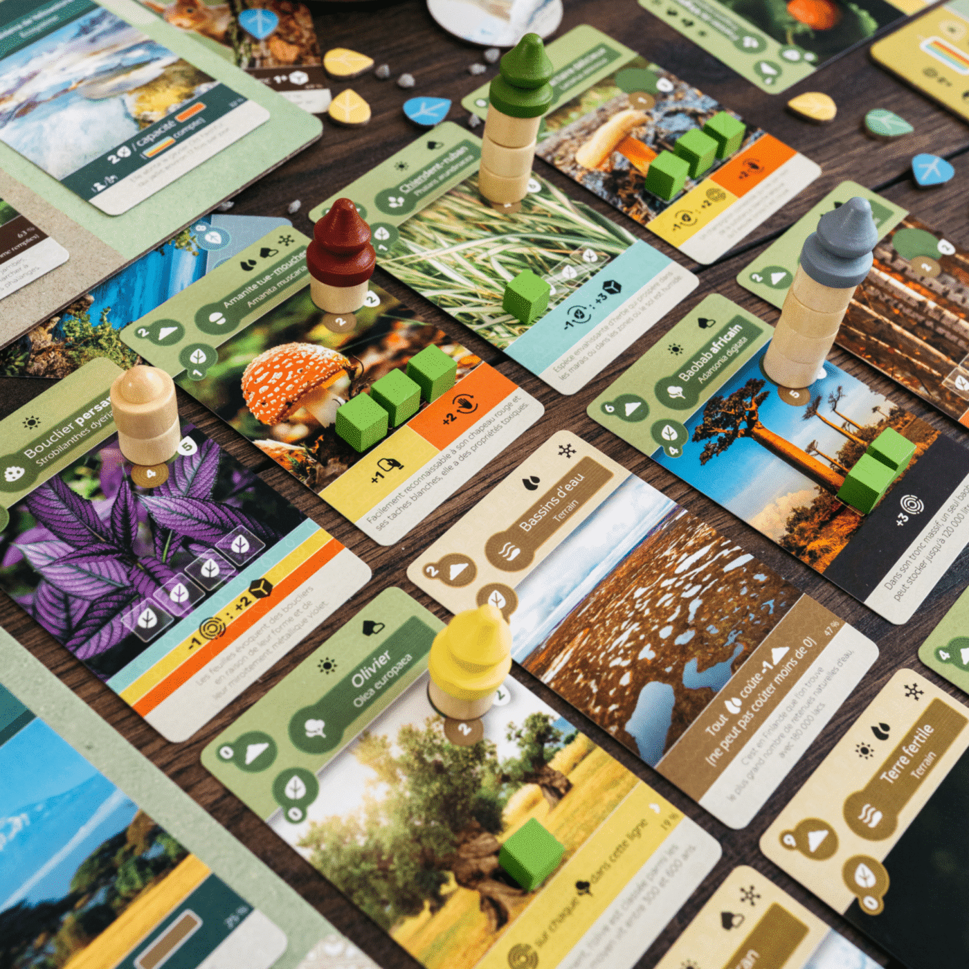 Plongez dans l’univers de Earth, le jeu de société qui apporte la beauté du monde à votre table! Créez des écosystèmes autosuffisants dans un jeu aux règles simples, offrant de multiples possibilités stratégiques. Choisissez judicieusement les cartes qui composeront votre île parmi plus de 358 cartes uniques et placez-les stratégiquement afin de créer un environnement prospère. Découvrez de nouvelles synergies et connexions à chaque partie, et expérimentez la diversité de la nature!