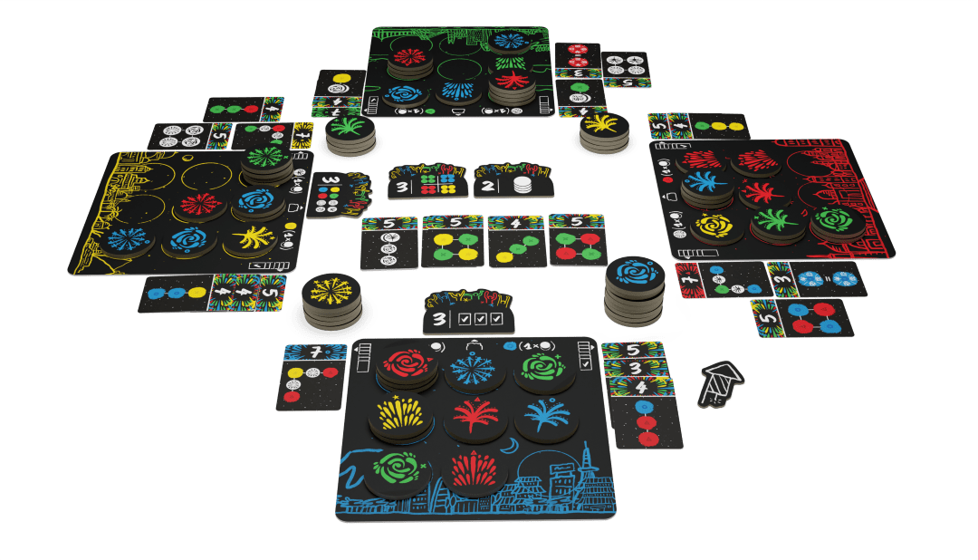 • 4 Plateaux joueur double-face (avec leur propre couleur et Feu d’artifice)