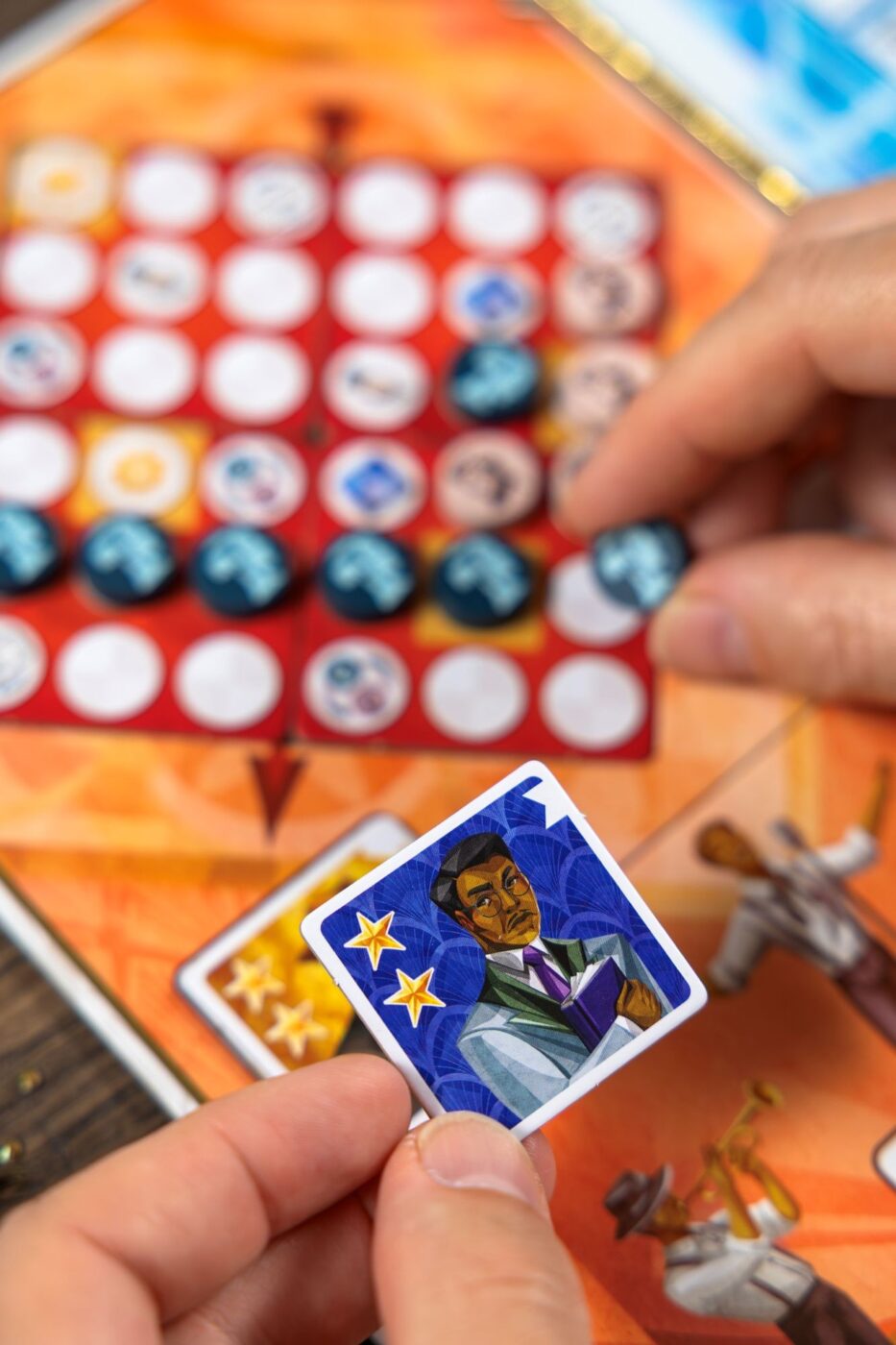 In this two-player game, you’ll engage in a strategic duel where every decision can lead you to victory or open the door to your opponent’s counterattack. Each turn, you must carefully choose your actions to gain the upper hand across the game’s three locations and draw influential figures to your side. To win, you’ll need to either gather three figures from the same family or collect one from each of the five families. Every move counts, and each choice will either bring you closer to triumph or give your rival a precious chance to turn the tide.