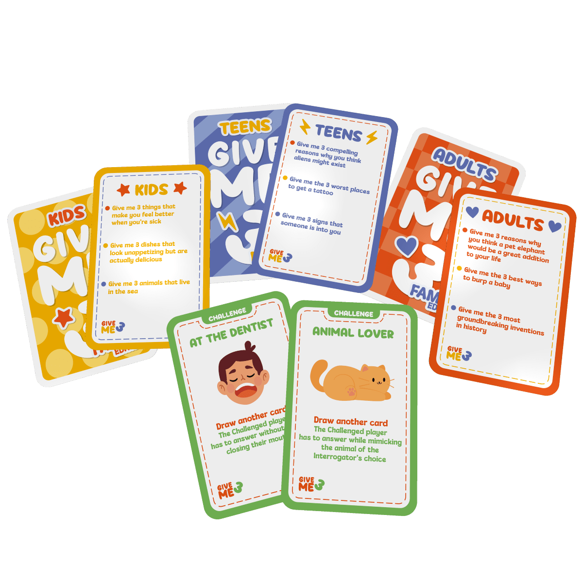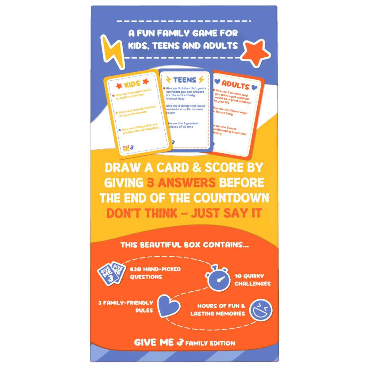 🎉 GIVE ME 3 Family is a fun trivia game for kids, teens and adults that will make the whole family laugh!