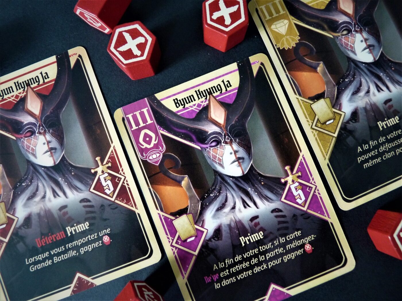 UNIQUE CLAN POWERS: Out of the 8 clans, each player chooses 3 to combine into their deck. The remaining 2 clans change the rules for the rest of the game.