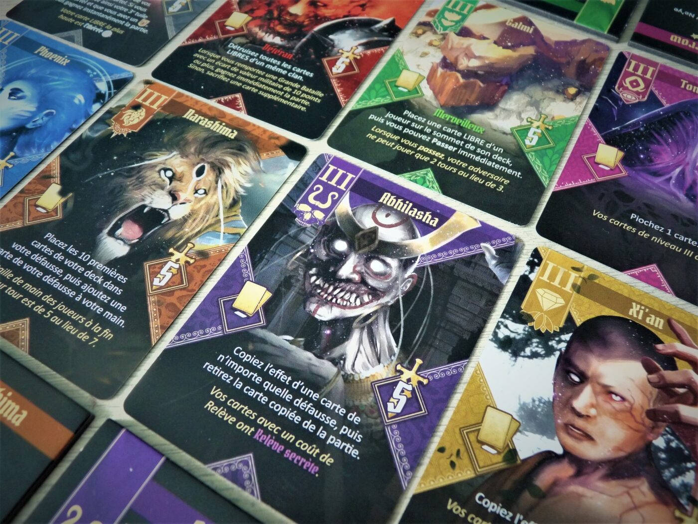 LUXURY COMPONENTS: The dozens of unique illustrations on the cards adds to the drama of the game, while the screenprinted components, velvet insert, and thick tiles create a luxury gaming experience.