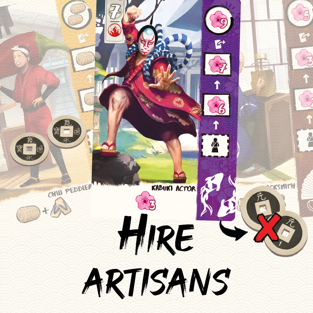 ONE YEAR IN EDO JAPAN: Play twelve rounds, with a new deck of cards used each season, changing the occupations and effects you experience throughout the year!