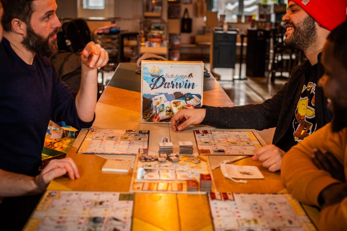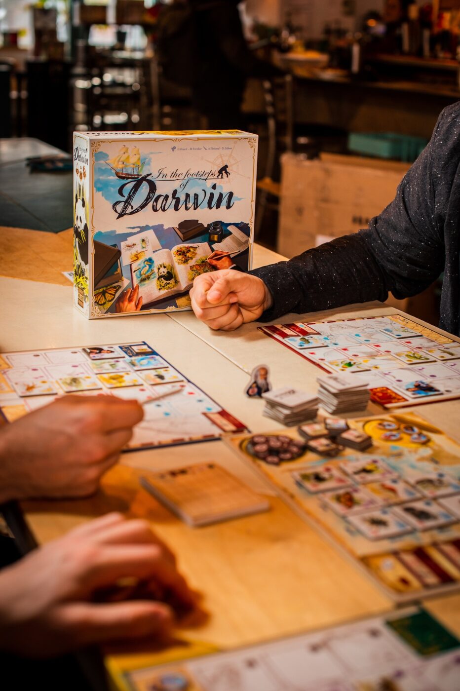 Players are junior naturalists who have just arrived aboard the Beagle to help Charles Darwin finish his book On the Origin of Species. During this journey, you will study animals, carry out cartographic surveys, publish your findings, and develop theories. Your goal is to score more Victory Points than your opponents to determine who contributed the most to the Origin of Species!