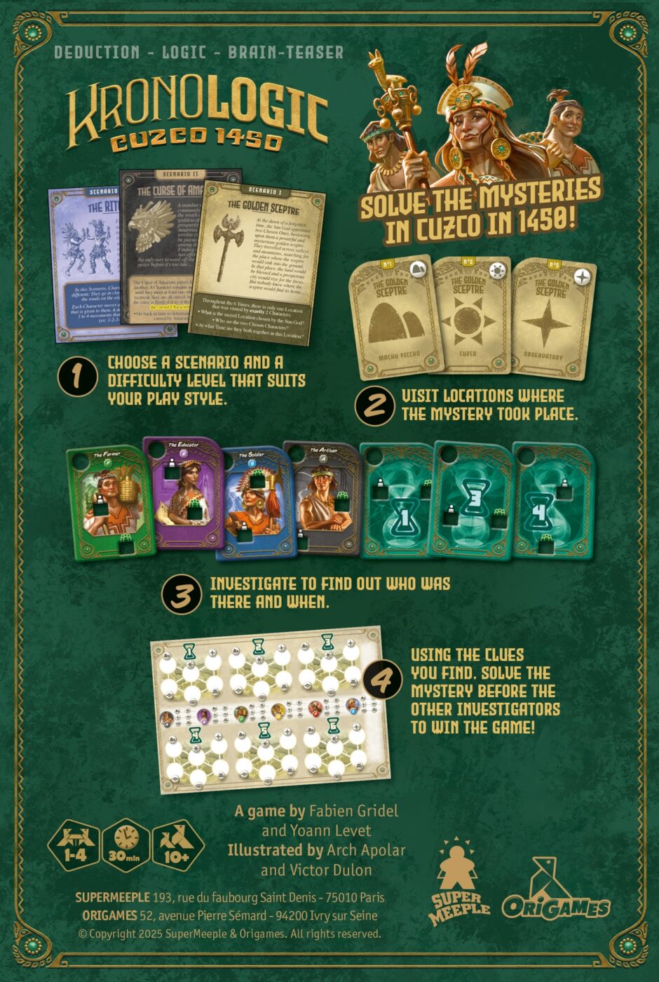 Solve the investigations in Cuzco, in 1450. Investigators, it's up to you to unravel a series of unexplained mysteries that all took place in Cuzco, Peru. Each of the investigations, varying in complexity, will test your insight and logical deduction skills. Who ? Or ? When ? Your goal is to solve each mystery before the others, and restore the truth.