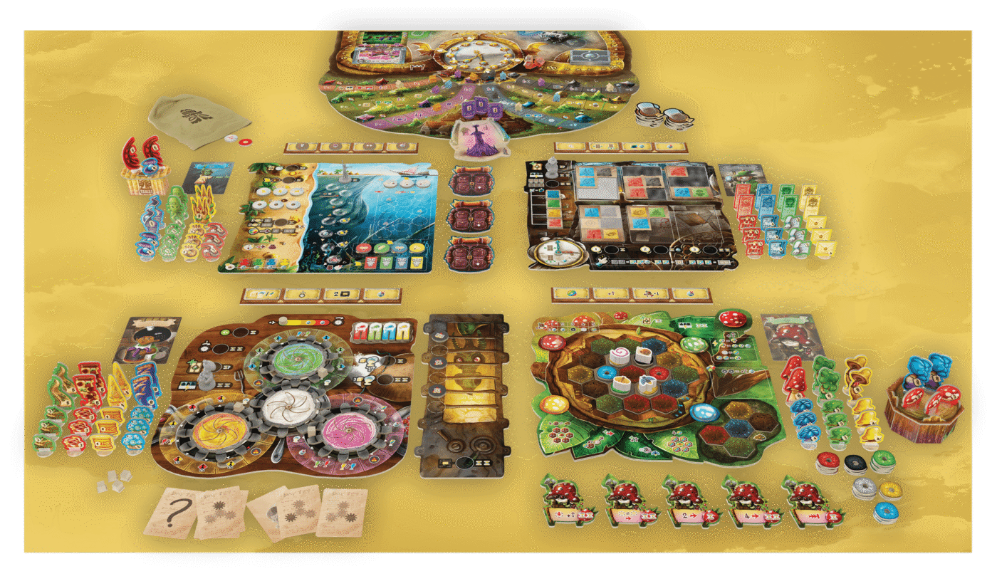 En plus des nouveaux marchands, le festival des factions étend également le jeu de manière substantielle. Un nouveau plateau est connecté au bas du plateau principal, ajoutant des pistes pour chacune des factions et de tout nouveaux mécanismes à utiliser pour chaque faction. Les sorciers enchanteront vos biens pour les rendre plus précieux, tandis que les voleurs vous aideront à piéger les autres joueurs, vous permettant de vous débarrasser de la corruption en la faisant porter sur vos adversaires.