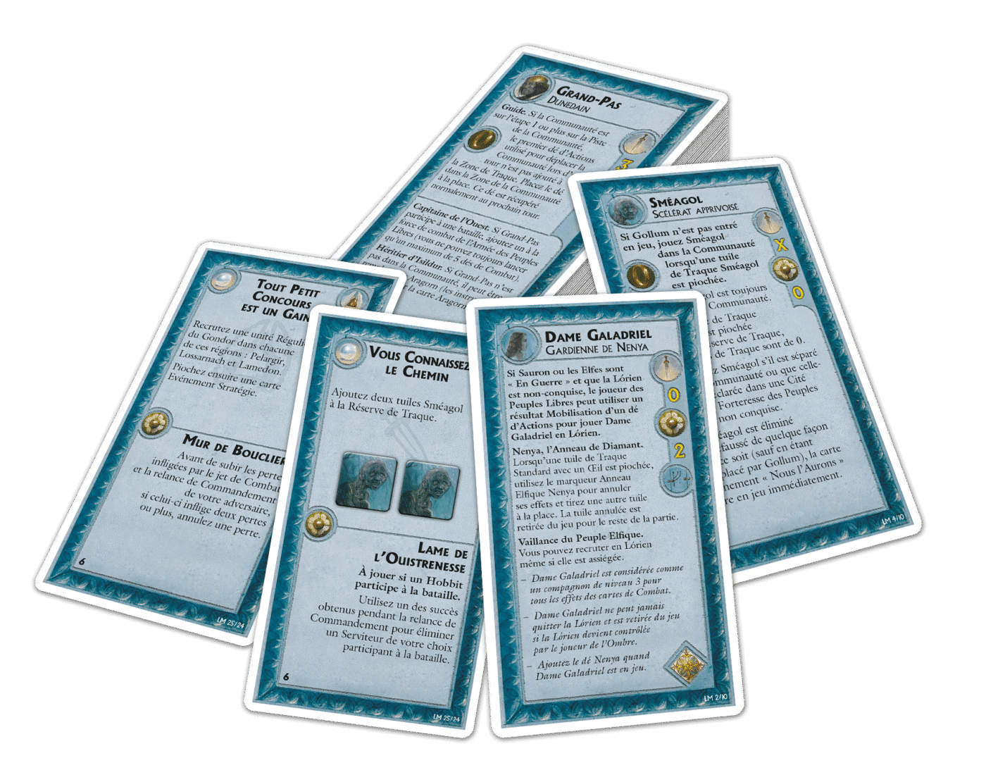 De nouveaux dés d'action spéciaux sont inclus : les dés Gardiens de l'anneau elfique pour le joueur des Peuples Libres et les dés Sbire inférieur pour le joueur de l'Ombre. De nouvelles versions de tous les Compagnons de la Communauté de l'Anneau sont également incluses, pour jouer les règles optionnelles du "Conseil de Fondcombe".