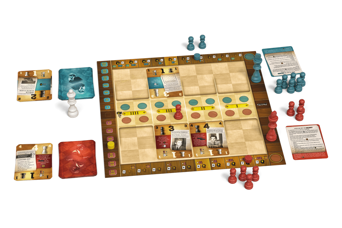 LE MATCH DU SIECLE nous propulse au cœur de la guerre froide lors de la finale mondiale d'échec de 1972, entre Bobby Fischer et Boris Spassky. Tension permanente et choix cornéliens vous attendent dans ce duel au sommet : jouez les cartes de vos jeux asymétriques et prenez l’avantage lors des échanges ou renoncez-y pour déclencher de puissants effets. Remportez plus de parties que votre adversaire pour gagner le Match du siècle.