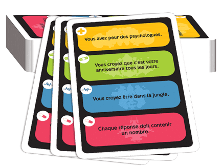 Tous les joueurs, sauf vous, souffrent d’un mystérieux trouble de la personnalité… Se croient-ils prisonniers d’une bouteille de vin ou en train d’auditionner pour une pièce de théâtre ? À vous de les interroger adroitement, faire les bonnes déductions et poser le bon diagnostique.