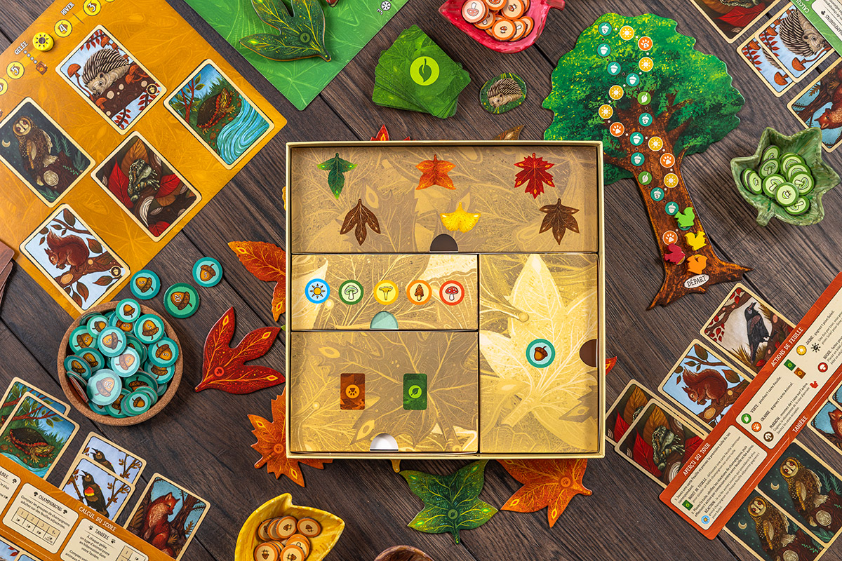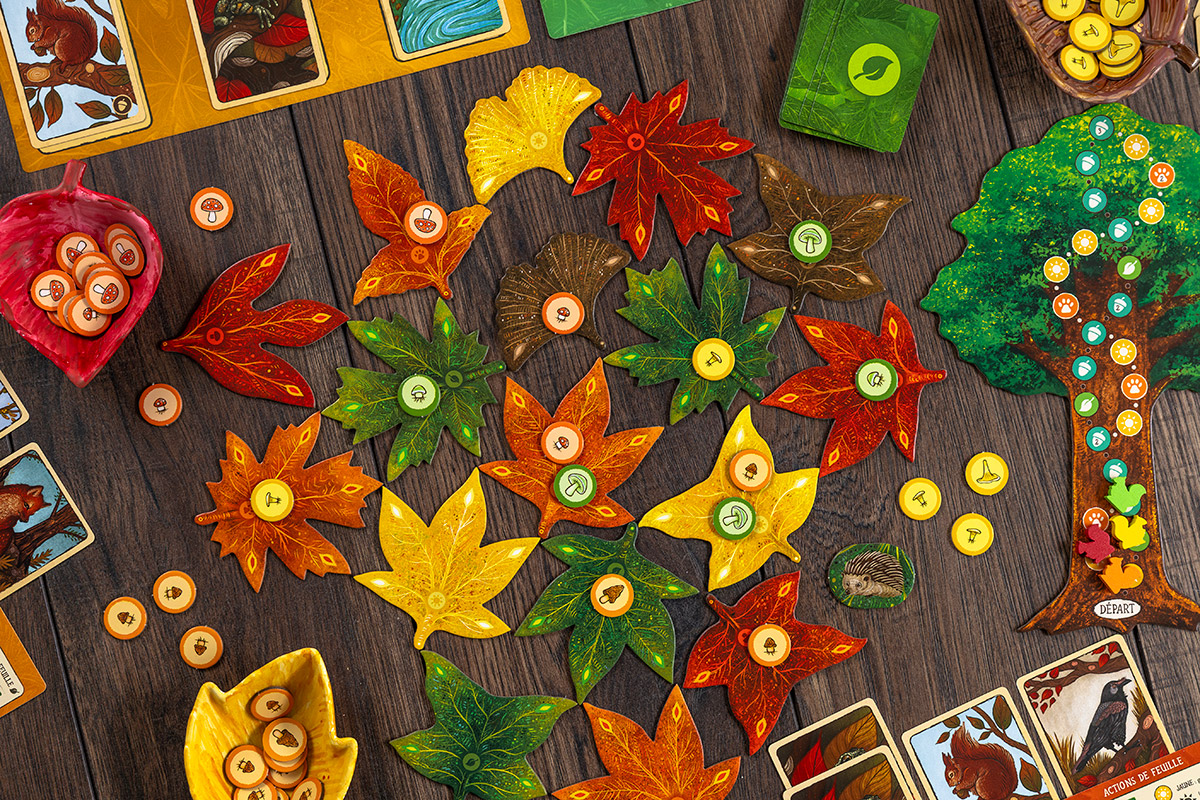 Placez stratégiquement vos tuiles pour attirer les animaux des bois, faire pousser de magnifiques champignons, aider votre écureuil à grimper à l’arbre, ou encore gagner des cartes Feuille et des jetons Soleil.
