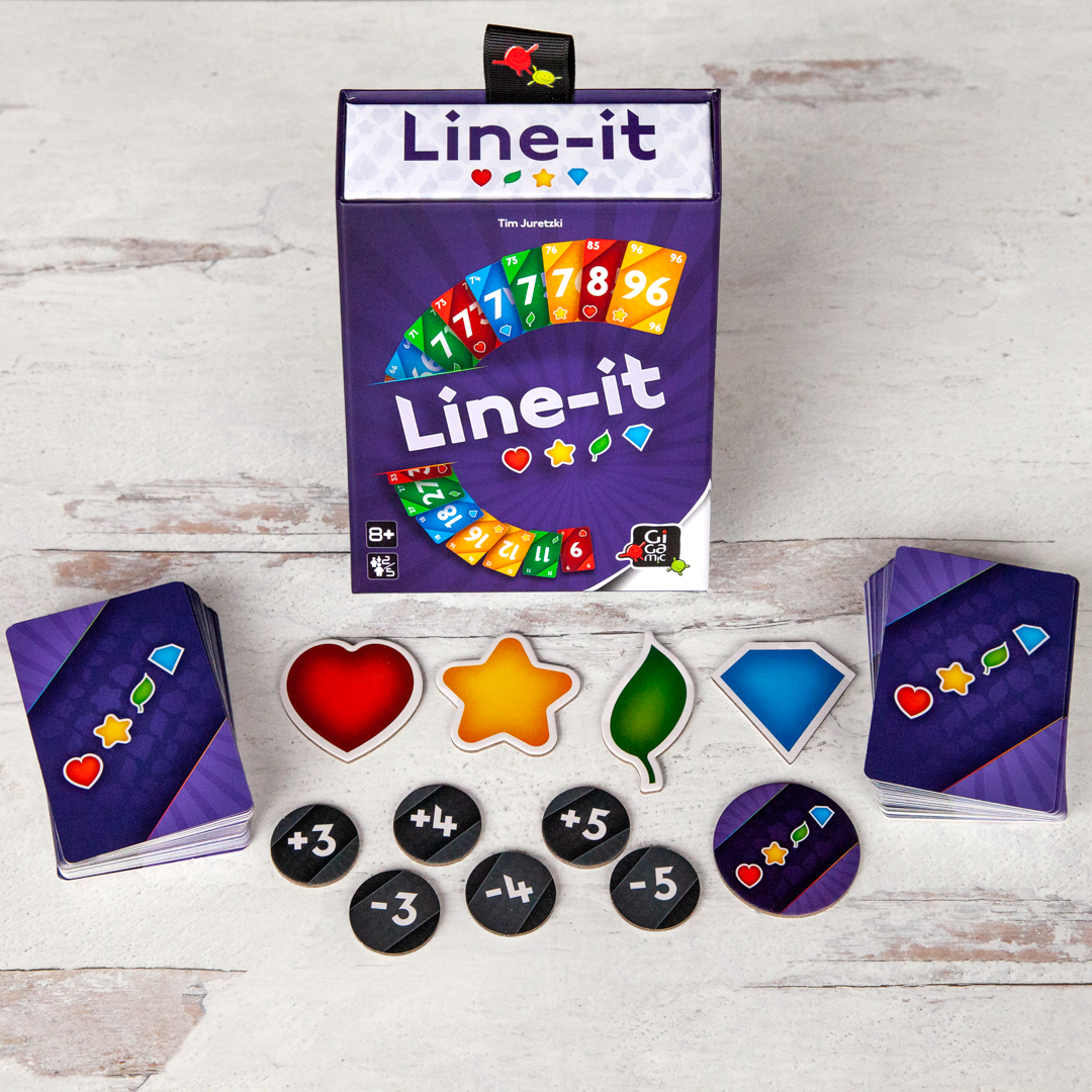 Line-it is an exciting, strategic card game where players build ascending or descending lines of numbered cards to score points. Experience dynamic gameplay, where every move counts — adapt to changing conditions, draft cards wisely, and decide whether to play it safe or chase bigger rewards!