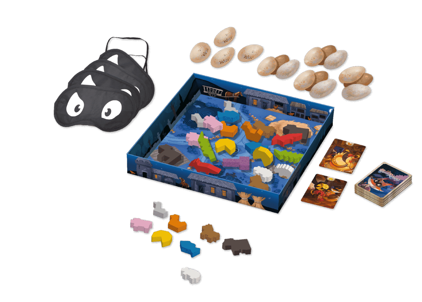 Maître Renard, le célèbre goupil, souhaite prendre quelques vacances loin de son domaine de Grisbois. Mais avant de partir il va choisir un remplaçant parmi les plus intrépides chapardeurs de la forêt. Afin de lui prouver votre valeur vous allez devoir accomplir les missions que vous confiera l’illustre roublard et ramener le plus gros butin possible de la ferme voisine. Le premier à obtenir 10 pions Œuf remporte la partie et devient le nouveau Maître Renard. Pour des joueurs expérimentés, passez cet objectif à 15 pions.