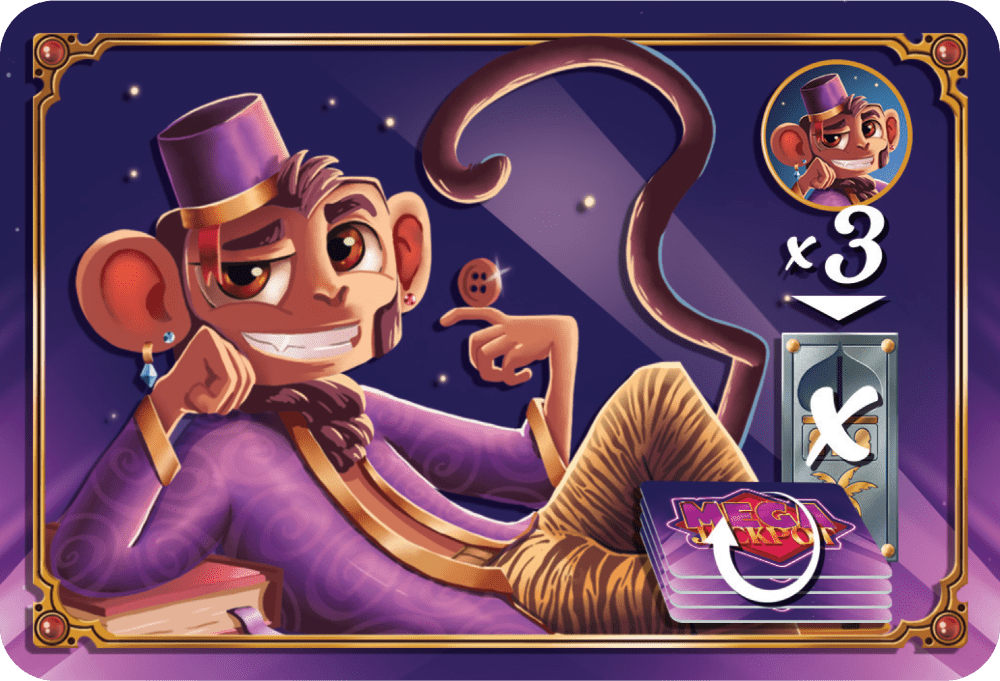 Méga Jackpot est un jeu d’ambiance rapide où l’audace est ta meilleure arme. Retourne des cartes pour aligner 3 symboles identiques et décrocher le jackpot. Mais attention : chaque victoire t’amène à un choix crucial — sécuriser tes gains… ou tout remettre en jeu pour viser encore plus haut.