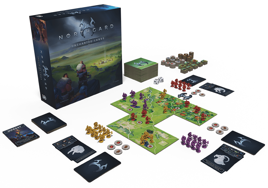 Based on the universe of the Northgard video game, Northgard: Uncharted Lands is a game of conquest and exploration set in the age of vikings. Each player controls a Viking clan and builds their own deck, looking to achieve victory by reaping glory in various ways or controlling the most prized territories of this new continent.