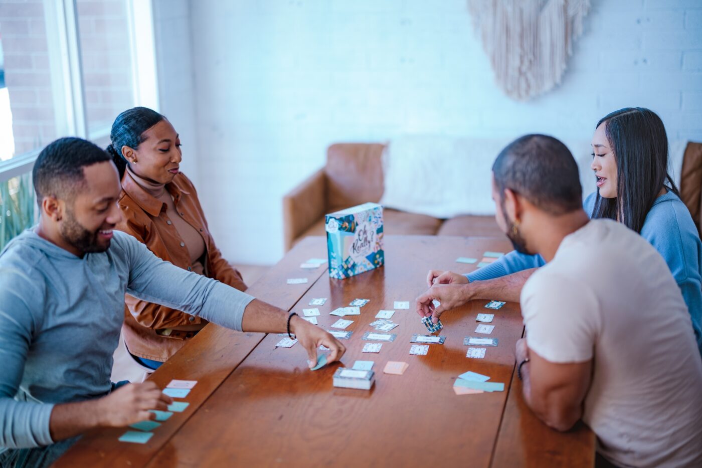 EASY SETUP: Each player receives their own hand of 6 cards, then you reveal 5 topic cards in the center of the table. Each round, simply reveal 5 new topic cards!